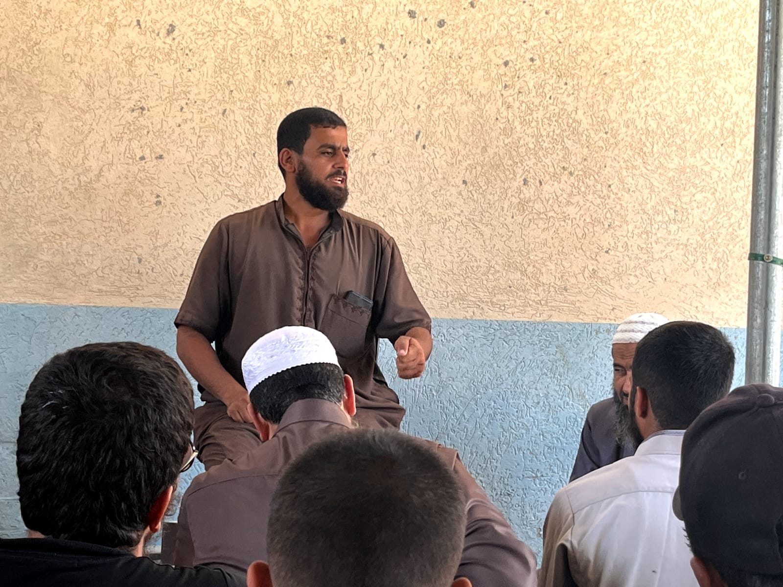 نظّمت جمعية ابن باز الخيرية درسًا دعويًا بعنوان "التواصي بالصبر والمرحمة" في أحد مصليات النزوح بمنطقة المواصي بخانيونس جنوب قطاع غزة، قدّمه فضيلة الشيخ سليمان زعرب.