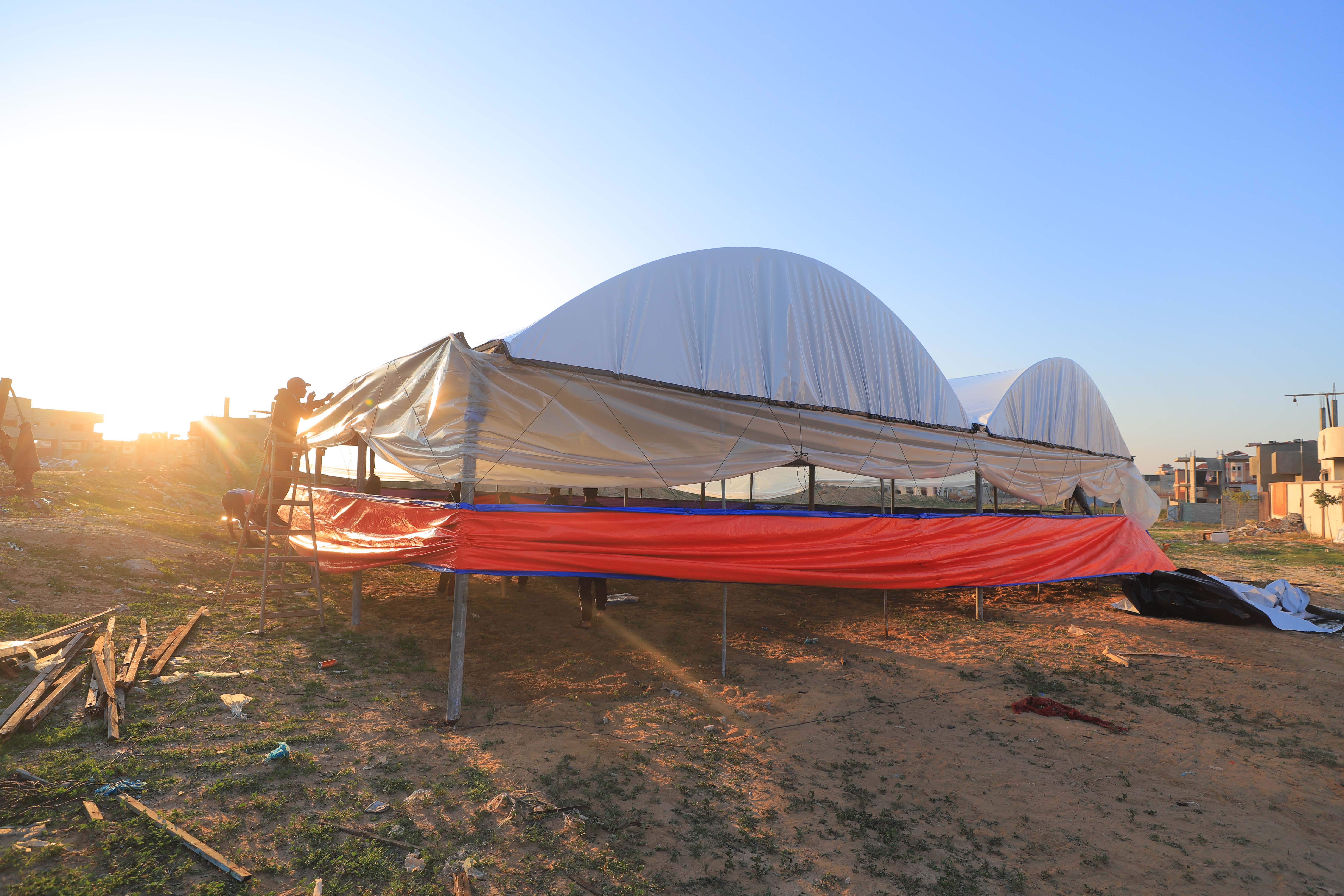جمعية ابن باز تسارع لإنشاء المصليات في مناطق غزة المنكوبة